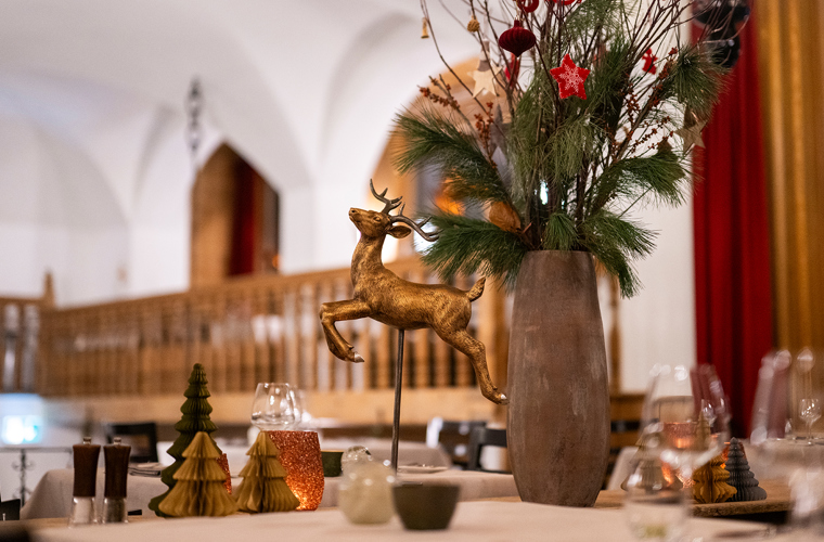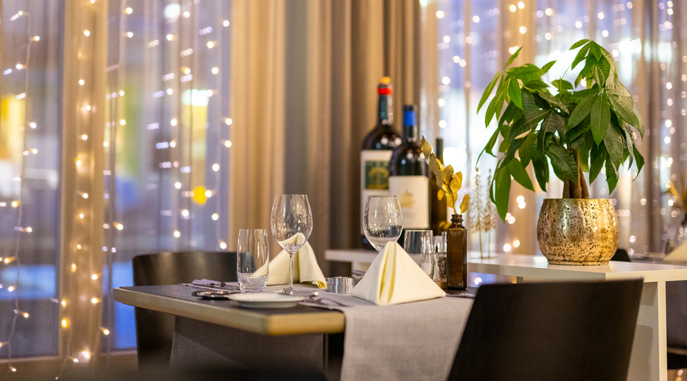 Lassen Sie sich die kulinarischen Kreationen von Küchenchef Henning Malinowski und seinem Team in unseren festlich dekorierten Speisesälen auf der Zunge zergehen. Dazu empfehlen Ihnen unsere Servicemitarbeitenden einen passenden Wein zum Menü.