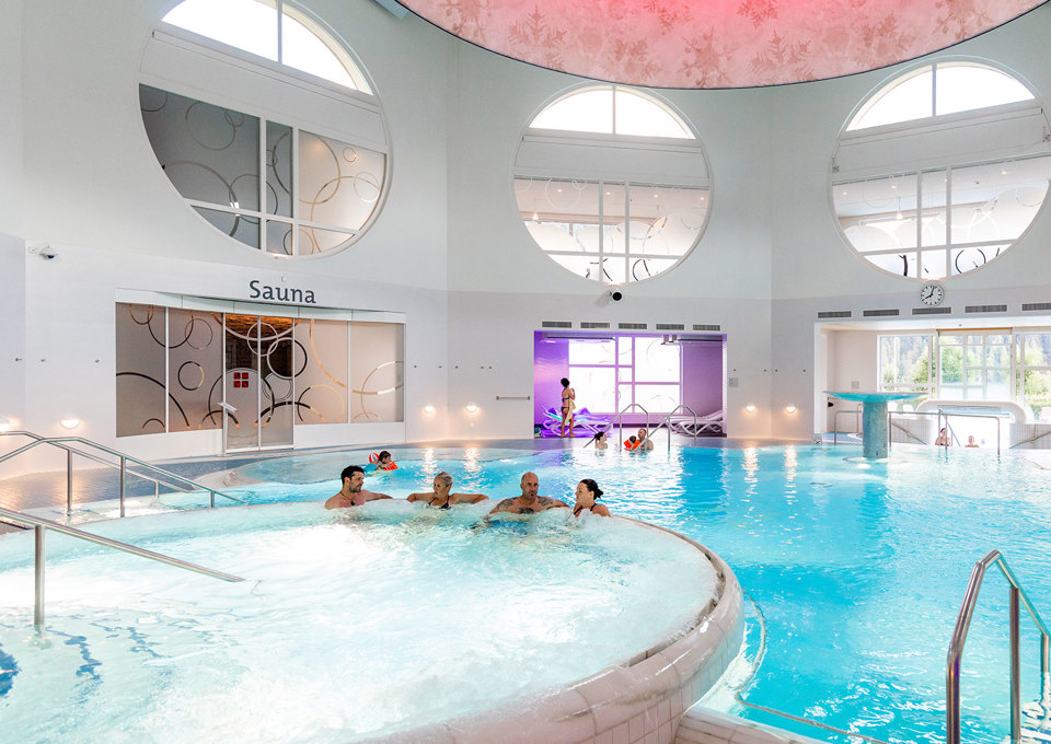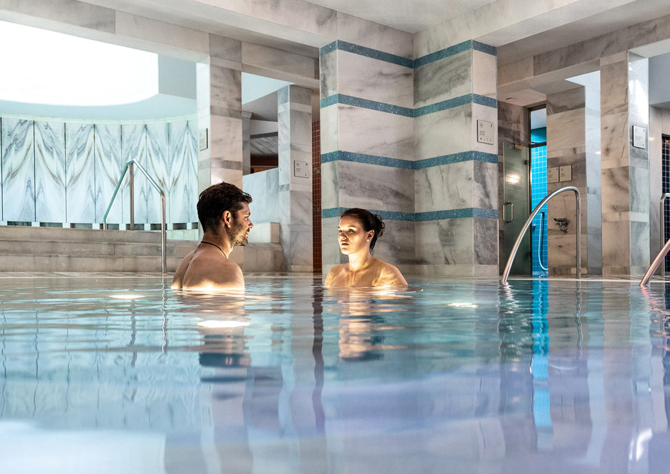The Engadin Bad Scuol includes various indoor pools, a panoramic outdoor pool and a spacious sauna area. There is also the Roman-Irish bath, a bathing ritual that can be booked separately. The wellness and therapy centre round off the spa complex's offerings.